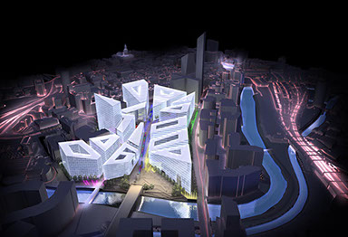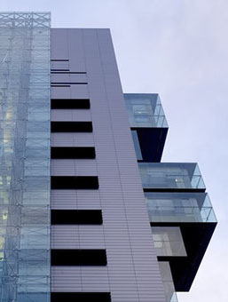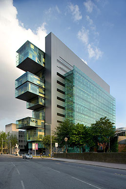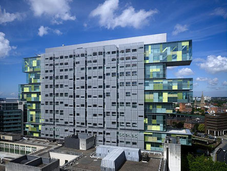 Manchester Civil Justice Centre is an award winning building for 50 courtrooms, using low energy environmental principals such as solar shading and natural ventilation that have informed its unique appearance. The building is broken into three linear elements each representing a distinct function, courtrooms, core and public space. The elevated projecting boxes enclose courtrooms while the main facade is expressed by solar screening to the courtroom corridors. Due to its high sustainable design, the building has achieved a BREEAM rating of excellent.