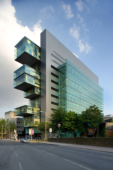 Manchester Civil Justice Centre is an award winning building for 50 courtrooms, using low energy environmental principals such as solar shading and natural ventilation that have informed its unique appearance. The building is broken into three linear elements each representing a distinct function, courtrooms, core and public space. The elevated projecting boxes enclose courtrooms while the main facade is expressed by solar screening to the courtroom corridors. Due to its high sustainable design, the building has achieved a BREEAM rating of excellent.